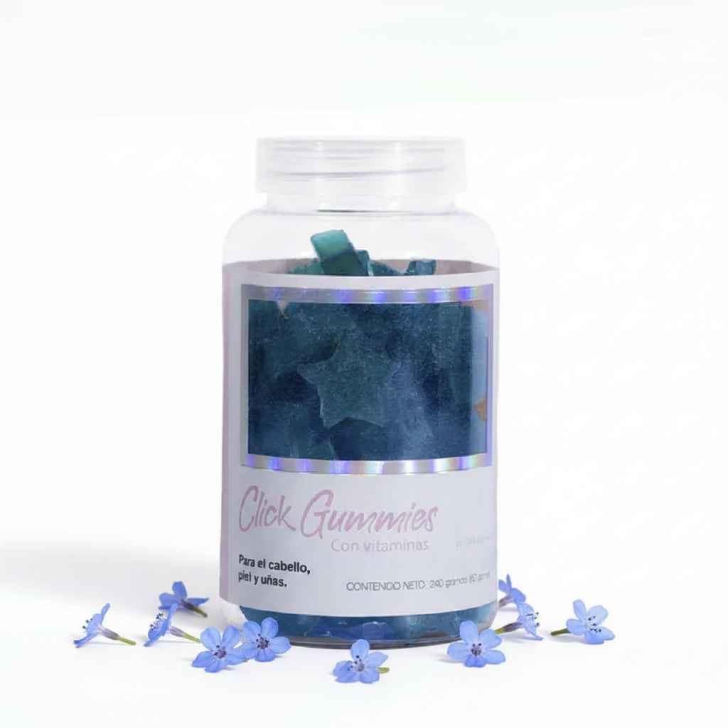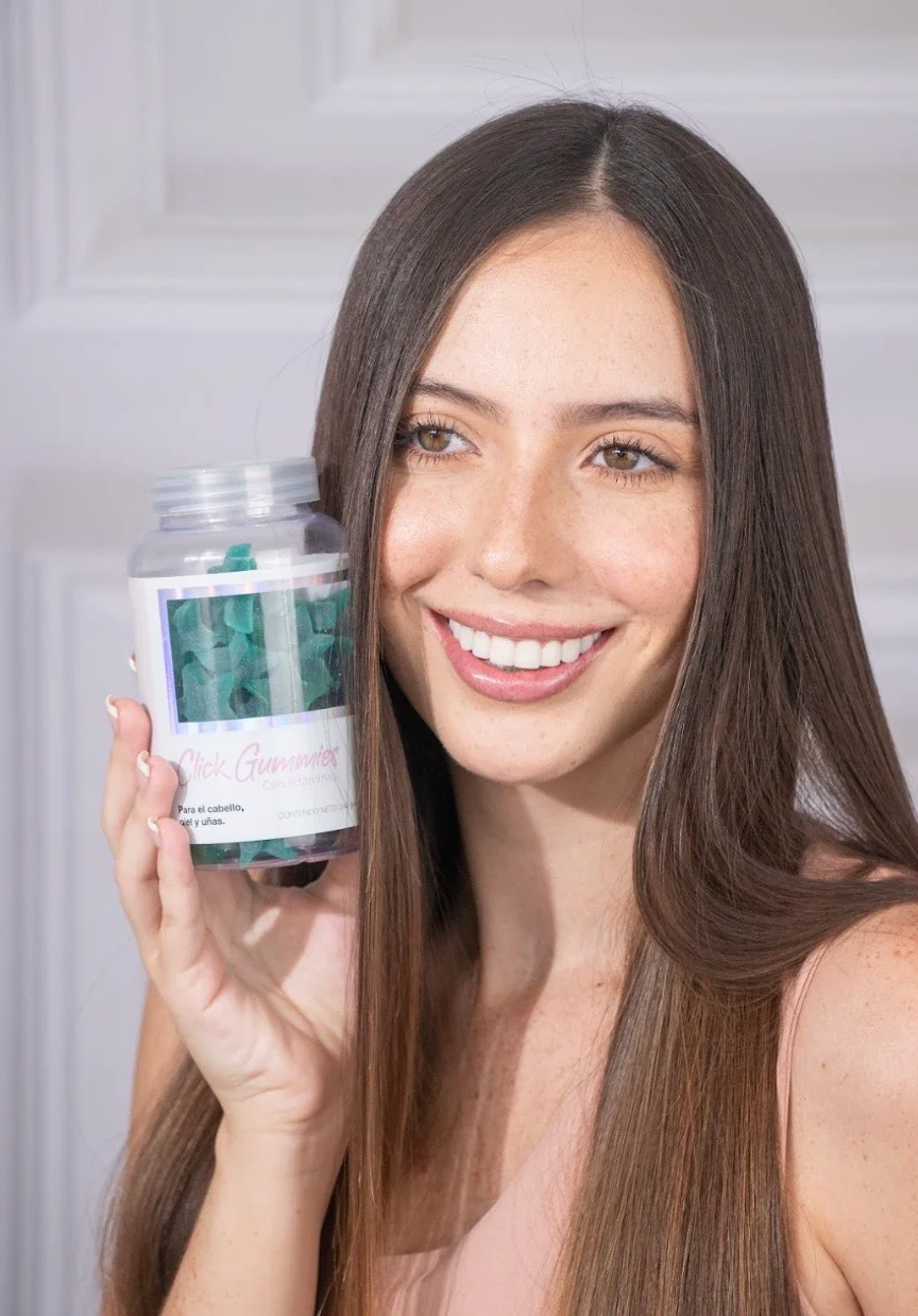 Nuestras Gomitas Click son una dosis de vitaminas y minerales creadas para nutrir tu cuerpo y estimular el crecimiento de tu cabello, fortalecer tus uñas y proporcionar elasticidad y brillo en tu piel.